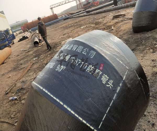 環(huán)氧煤瀝青防腐結(jié)構(gòu):由環(huán)氧樹脂 煤焦油瀝青 填料制成的防腐涂料在彎頭表面上用玻璃布作為加強涂敷形成防腐層,常用于管道外壁防腐。厚度一般為0.5~1.0mm 。